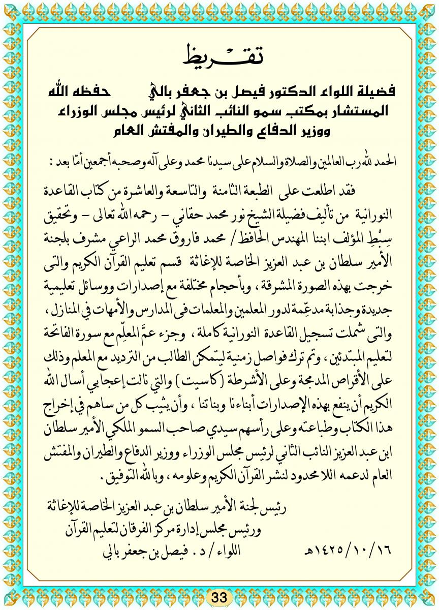 تقريظ فضيلة اللواء الدكتور فيصل بن جعفر بالي حفظه الله